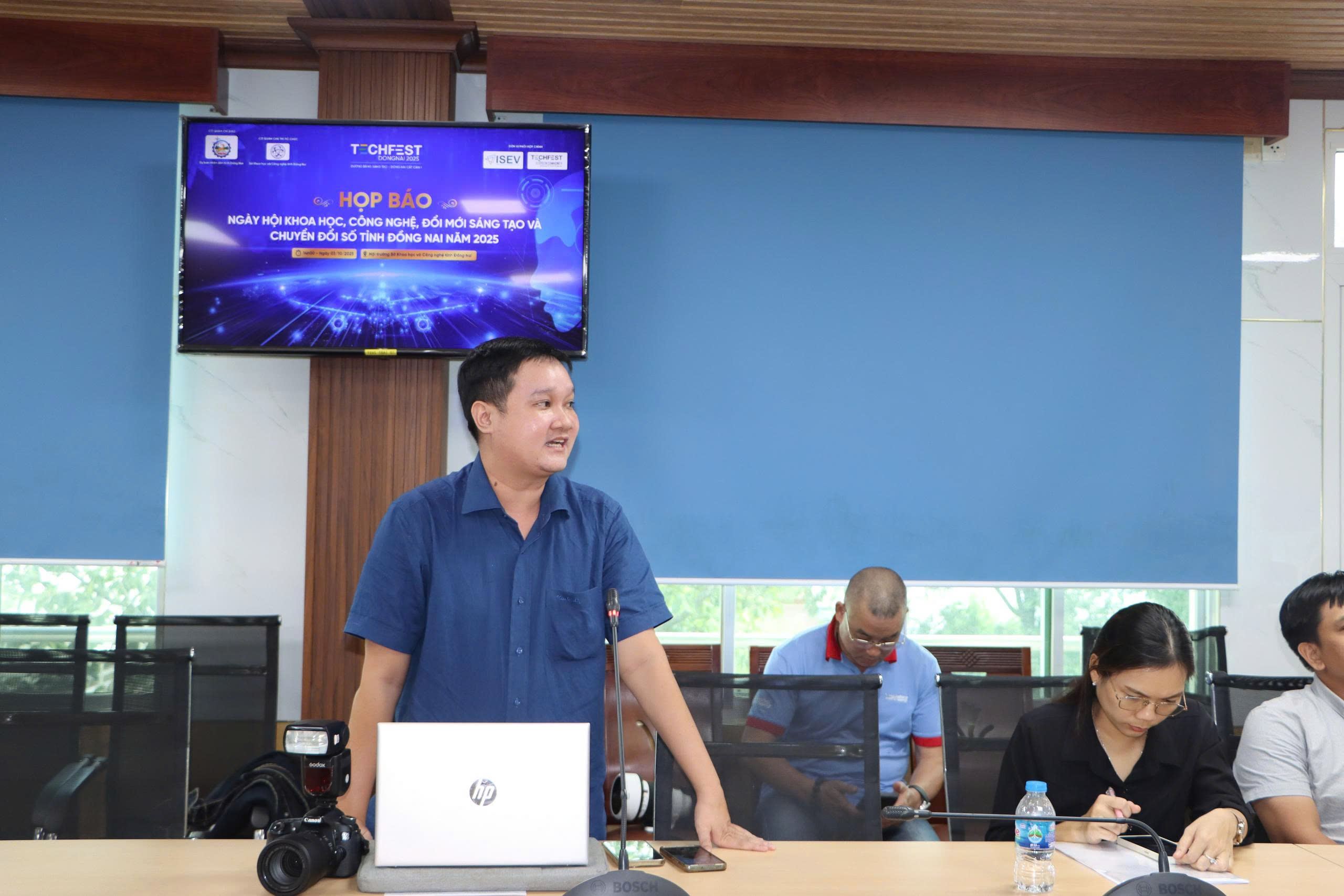 Ngày 3-10, Sở Khoa học và Công nghệ tỉnh Đồng Nai tổ chức họp báo công bố sự kiện Ngày hội Khoa học, công nghệ, đổi mới sáng tạo và chuyển đổi số năm 2025 (Techfest Dong Nai 2025). Các Phó Giám đốc Sở Khoa học và Công nghệ tỉnh Đồng Nai: Võ Hoàng Khai và Nguyễn Minh Quang chủ trì họp báo.